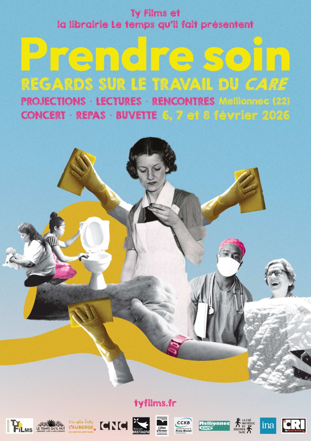 Afin d’ouvrir un espace de débat, de discussion et de réflexion sur cette nouvelle thématique de société qu’est le travail du care, Ty Films et la librairie Le Temps qu’il fait vous a concocter 3 jours de projections, lectures, ateliers, rencontres, concert, repas réconfortants et buvette. Il y en aura pour tous les goûts, tous les âges et tous les budgets.