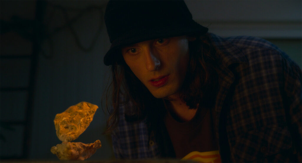 Ce qui m’a toujours guidé dans l’écriture et la fabrication du film, c’était l’envie de placer les personnages et les huîtres sur le même plan de réalisme. Je voulais qu’on puisse croire que n’importe quelle huître puisse s’animer et se mettre à chanter. J’ai donc rapidement écarté la possibilité d’animer les huîtres en stop motion pour favoriser la prise de vue réelle qui nous permettait de filmer ensemble Pablo et ses compagnonnes iodées. Travailler avec des marionnettistes s’est donc révélé la meilleure des possibilités. Seul hic, je n’y connaissais rien. C’est grâce à une amie qui m’a mis en contact avec le Théâtre de la Halle Roublot en région parisienne, que j’ai rencontré Adèle Couëtil et Félix Blin Bellomi avec lesquels nous avons fait plusieurs résidences pour aboutir à la création des marionnettes et à leur manipulation. Si la création des marionnettes à fils (4 fils par huître) s’est révélée relativement simple, recréer la membrane intérieure des huîtres nous a demandé plus de recherches pour obtenir ce rendu gélatineux et liquide si spécifique. C’est finalement en sculptant de la cire chauffée pour reproduire la membrane dans la coquille puis en ajoutant un mélange de Slime et de liquide désinfectant que nous avons obtenu le résultat espéré : à savoir une belle huître bien baveuse mais raccord à chaque prise !