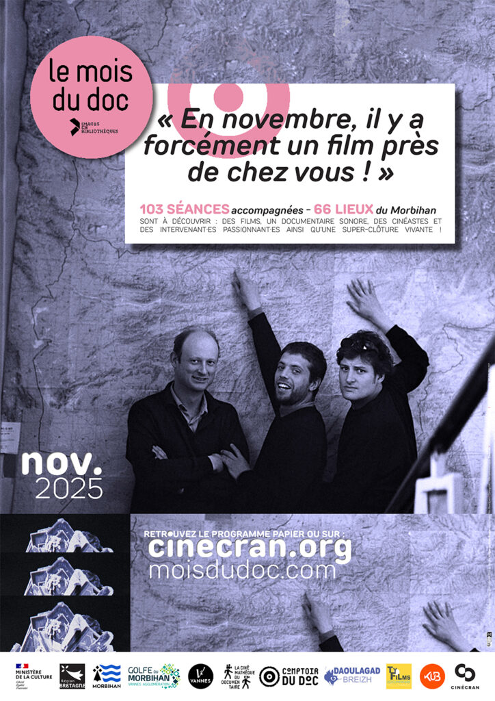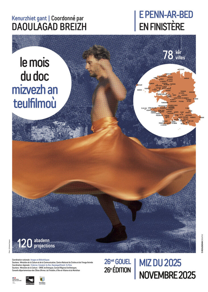 Des centaines de projections animeront cinémas, médiathèques et lieux culturels partout en France et au-delà ! En Bretagne, la manifestation prend une ampleur toute particulière – étant la plus importante de France – grâce à la coordination régionale de quatre associations adhérentes de Films en Bretagne : Comptoir du Doc (Ille-et-Vilaine), Ty Films (Côtes-d’Armor), Cinécran (Morbihan) et Daoulagad Breizh (Finistère). Ensemble, elles tissent un réseau vibrant qui, tout au long de l’année, fait souffler un véritable vent de documentaire sur le territoire — entre projections, rencontres et échanges entre cinéastes et habitant·es.