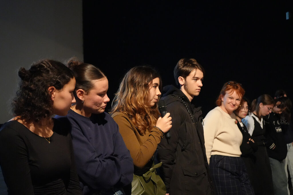 « Nous avons particulièrement aimé ce documentaire car c’est un métafilm qui dévoile l’envers du décor du cinéma. Ce film aborde le traumatisme d’une manière poétique ; il met en avant toutes les formes artistiques, que ce soit l’animation, la musique ou le cinéma. » – extrait du communiqué de presse des élèves.