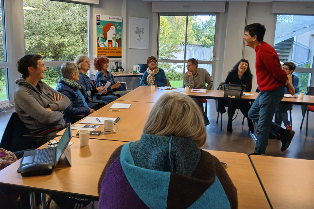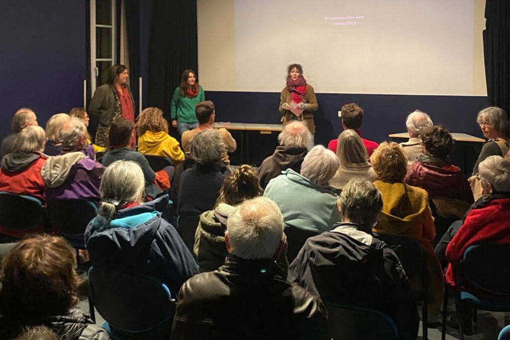 Le Mois du doc se prépare dès janvier avec l’appel à films commun aux quatre associations de la coordination régionale du Mois du doc en Bretagne. Nous associons des bénévoles aux visionnements. La pluralité des regards nourrit notre sélection. Le mois de juin est un temps fort avec 4 journées de visionnement qui réunissent chacune plus de 60 participant·es. Les salarié·es et bénévoles des médiathèques, associations, salles de cinéma, collectivités, établissements scolaires viennent souvent en équipe pour visionner les films ensemble et échanger avec les autres partenaires. Leurs retours sont précieux. Il y a parfois du débat !