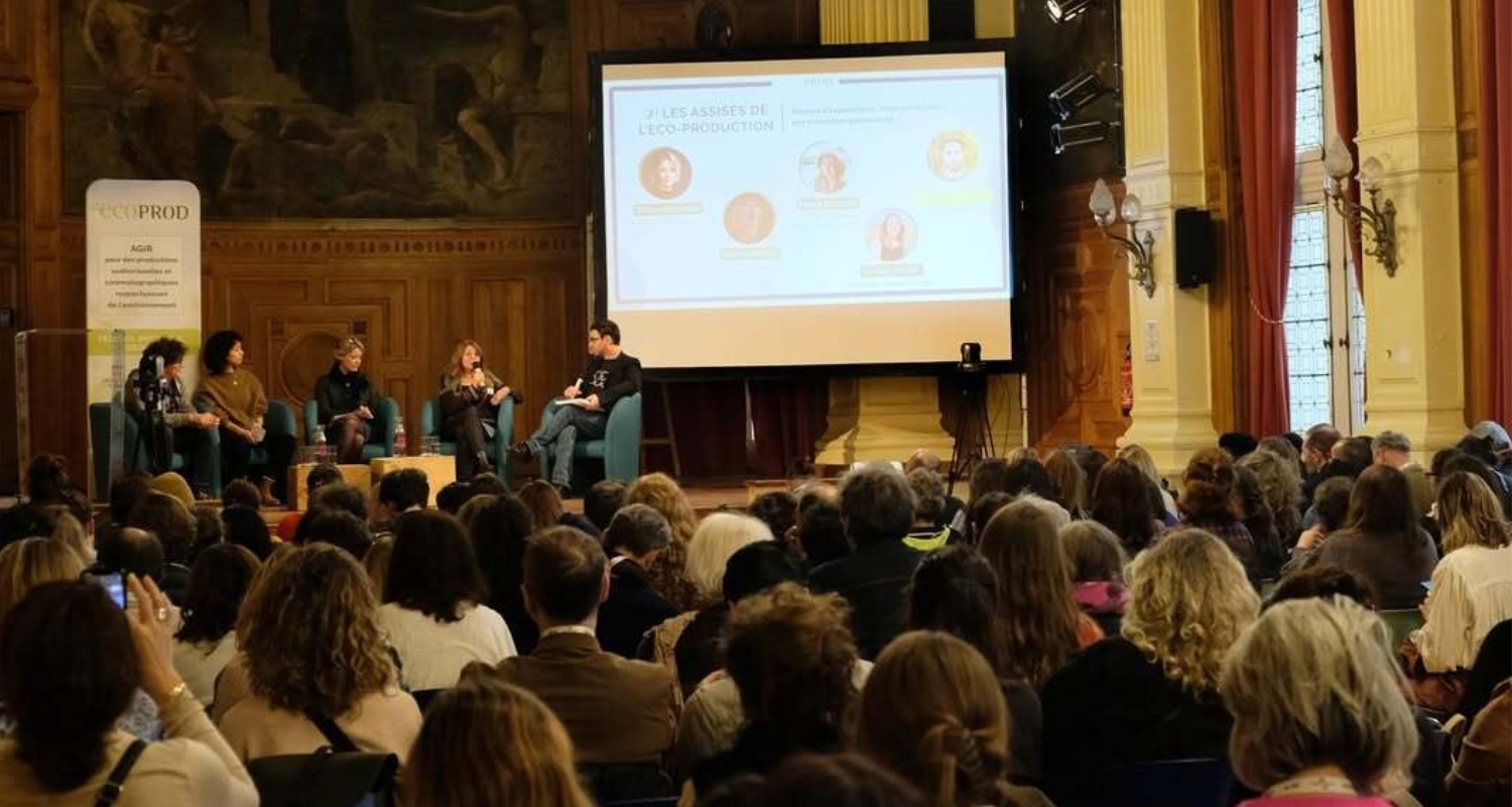 Mardi 10 décembre 2024, ce sont donc deux éco-référentes bretonnes, adhérentes de l’association, Déborah Gillet et Mado Le Fur, qui ont participé aux 3èmes Assises organisées par Ecoprod à l’Académie du Climat. Avec 450 participant·e·s de tous horizons, cette édition affichait complet et témoigne de l’engagement croissant de l’industrie audiovisuelle vers des pratiques plus responsables…et si le mouvement s’accélérait ?