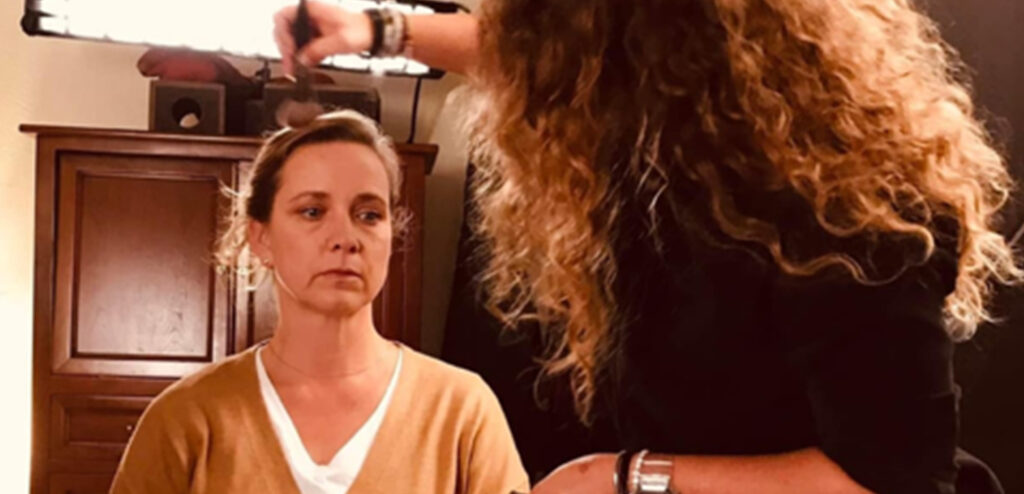 Avec Carole Sibiril, ma collègue de jeu qui travaille en soins palliatifs, nous devons faire à deux la toilette de Farid Afifi qui joue Adil, nous ne nous connaissons pas et nous sommes juste salués autour d’un café. C’est intime et délicat, elle me guide avec douceur sur tous les gestes pour qu’ils soient crédibles, concrets et respectueux. Adil est le premier amour de Jeanne, mon personnage, il faut aussi qu’affleure l’émotion de ces retrouvailles singulières dans tous ces gestes.
