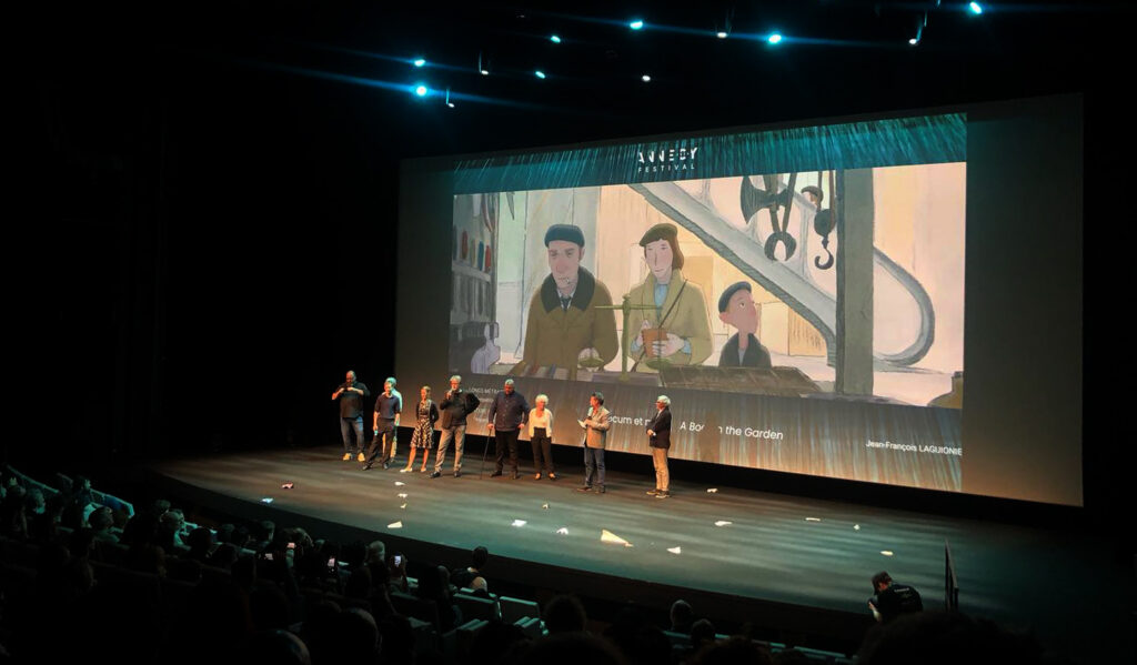 Pour revenir au contexte particulier de cette séance, en arrivant dans la salle, plusieurs choses arrivent dans le même temps… Il y a les mines réjouies et fières de celles et ceux qui ont travaillé sur le film (et qui pour la plupart étaient là pour ce film, mais également d’autres en sélection cette année, parce que ce fut un bien beau cru !). Il y a les visages que l’on reconnait d’une grande « famille » de l’animation bretonne, là, à Annecy – et on se sent en faire un peu partie, comme pièces rapportées (on n’a pas fait grand-chose, sinon y croire fort et essayer d’irradier cette conviction !). Il y a le sourire ami de Valérie Montmartin qui vient d’avoir une bonne nouvelle pour le prochain film qu’elle coproduit avec les JPL (ce fameux Séraphine dont le tournage démarre alors que j’écris ces lignes). Il y a la salle pleine, les présentations, les photos officielles et souvenirs pour nous… Il y avait déjà votre arrivée sur le tapis rouge de Cannes qui en soit était une fête ! Alors merci à vous pour ce moment, parmi d’autres moments de partage importants, durant lesquels on est sûr de participer à quelque chose d’important, durant lesquels les pièces de vastes puzzles s’assemblent et redonnent, jour après jour, du sens à ce que l’on fait. Des moments durant lesquels on a aussi le sentiment d’être « importants » (et durant lesquels mettre une cravate devient soudain un signe de reconnaissance et d’amitié profonde).