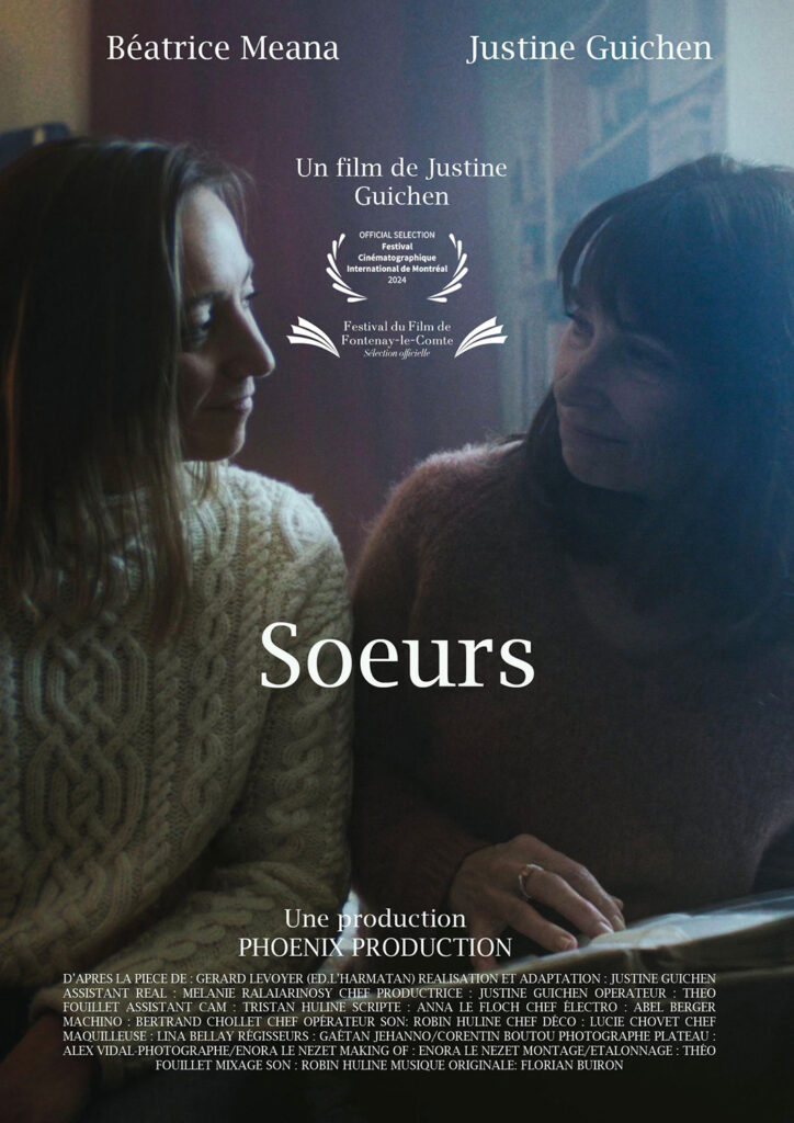 Sœurs remet au centre de la relation adelphique la nécessité de prendre du recul et d’accepter la réalité des liens familiaux, sans pour autant négliger la reconnaissance des blessures profondes de chacun·e. Ce court métrage, inspiré d’une pièce de théâtre de Gérard Levoyer, met en lumière la nécessité de revisiter ces déséquilibres invisibles et d’écouter les voix qui, souvent, n’ont jamais eu l’opportunité de se faire entendre.