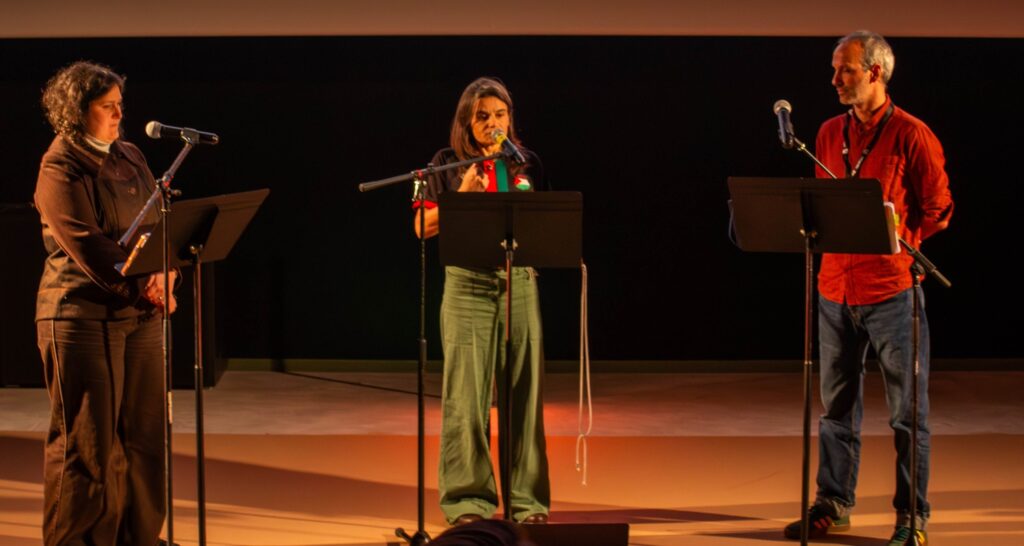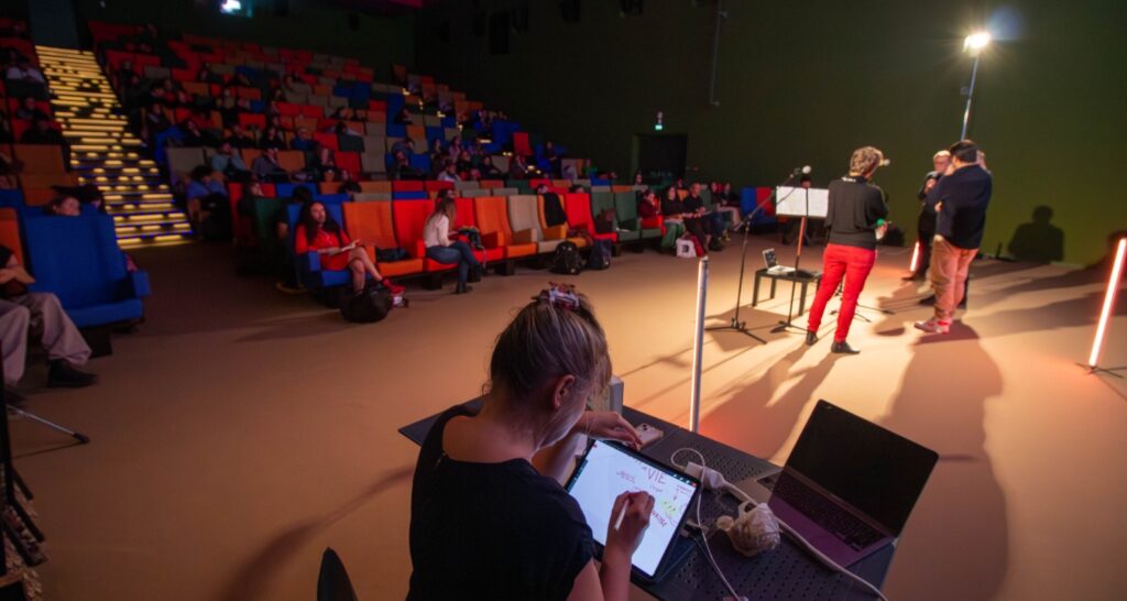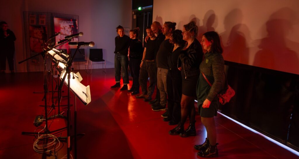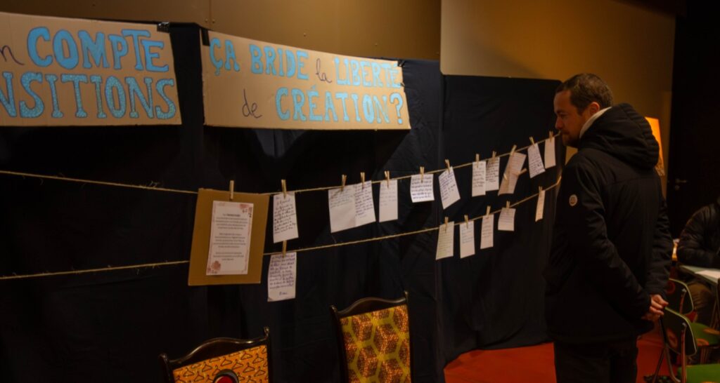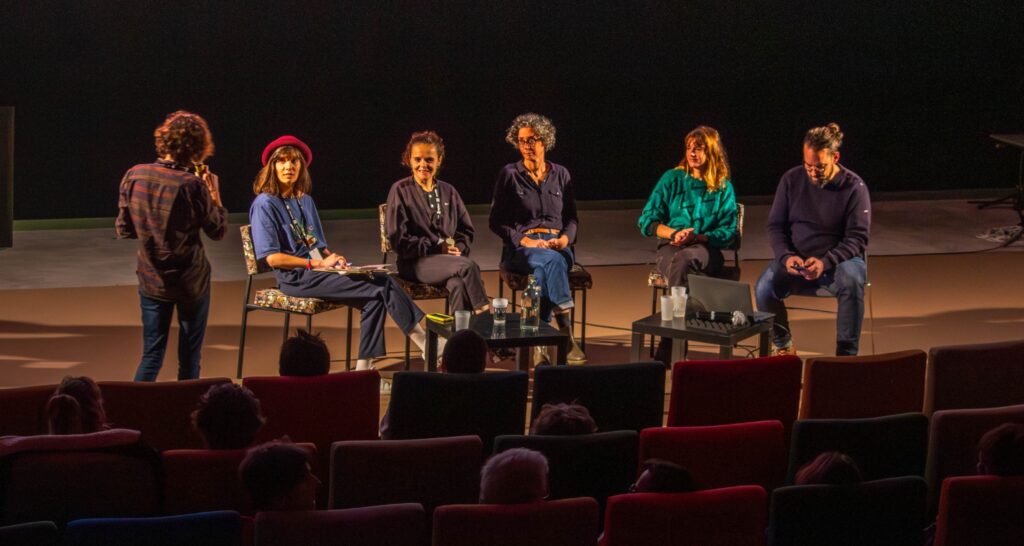 La journée a également permis de mieux appréhender un nouveau dispositif d’accompagnement porté par la Région Bretagne (« Ici lieux culturels, saisons d’auteur et d’autrice »), avant de faire un pas de côté avec, notamment, le collectif On l’a pas vu venir. À travers leur représentation, suivie d’un échange avec d’autres professionnel·es, c’est toute une réflexion sur les « mi-temps » de la création, les marges et la reprise de pouvoir sur les processus artistiques qui s’est ouverte.